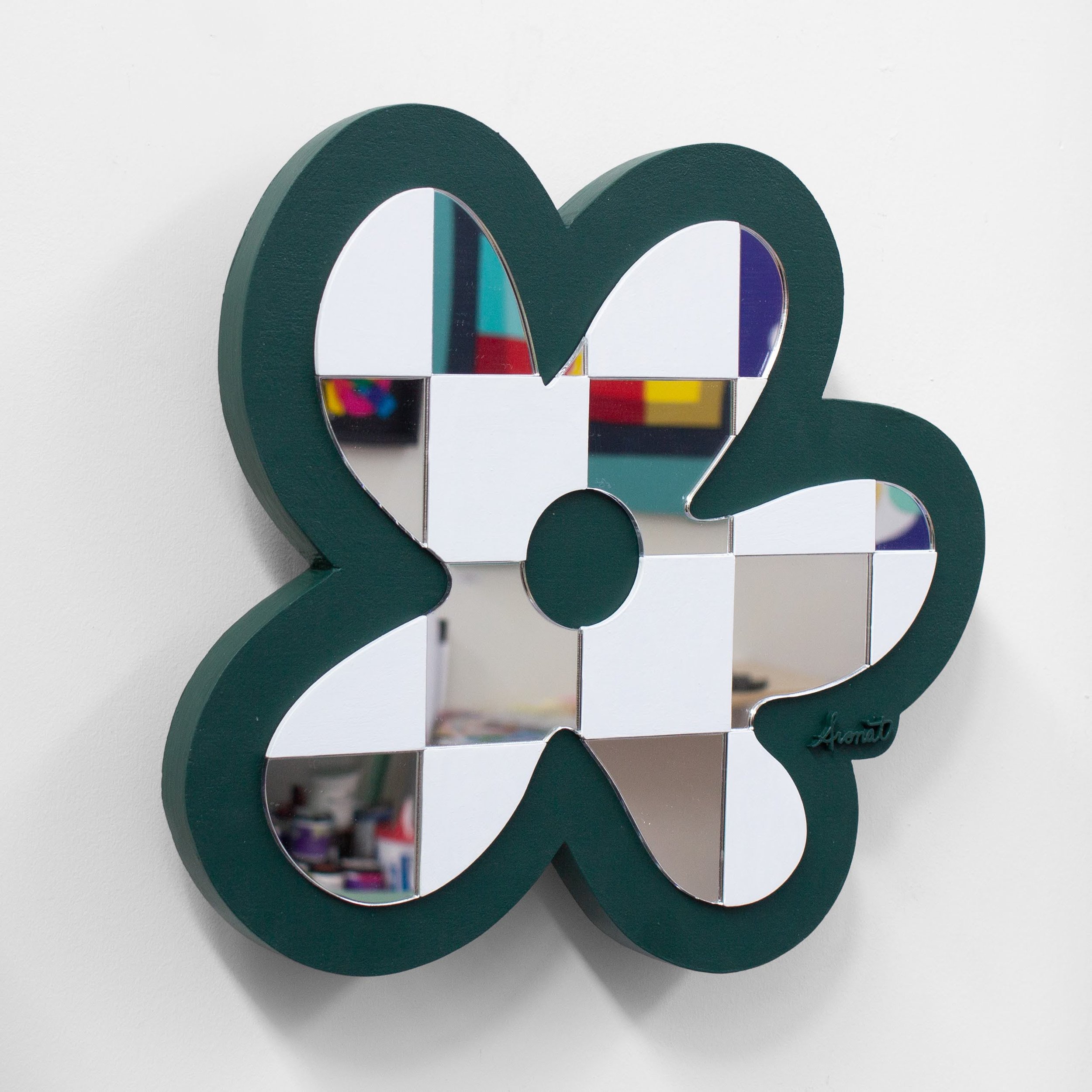 The Blooming series takes the flower form from my Dancing Queen design and reworks it into a checkered pattern of mirror acrylic and hand-painted white wood. The contrast between reflective and matte surfaces creates subtle shifts in light and perspective as you move around each piece.