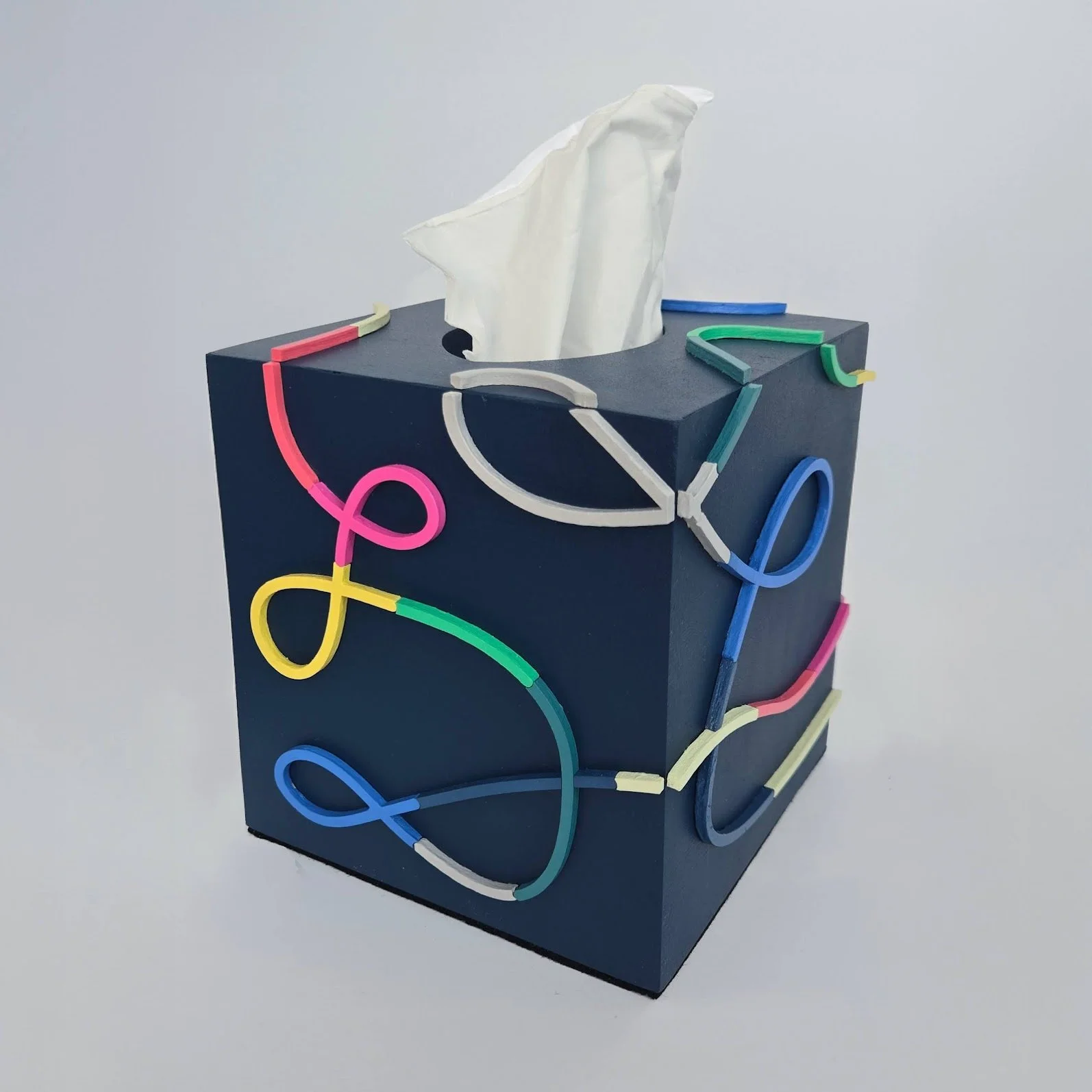 What started as a spark in a Santa Fe design shop turned into one of the most playful parts of my practice. I came across a Dusen Dusen tissue box with a flat printed design, and it made me wonder how I could take something so everyday and turn it into a sculptural, dimensional object. A year later, I made my first one. Since then, these colorful covers have become a way for me to bring art into new corners of the home. Not everyone has room for another piece on the wall, but who doesn’t have tissues in their home?!